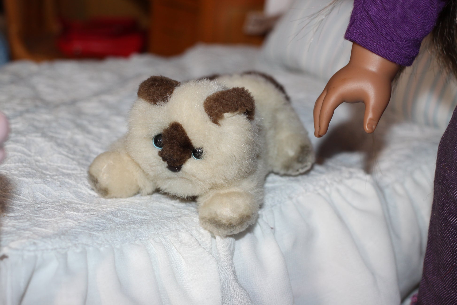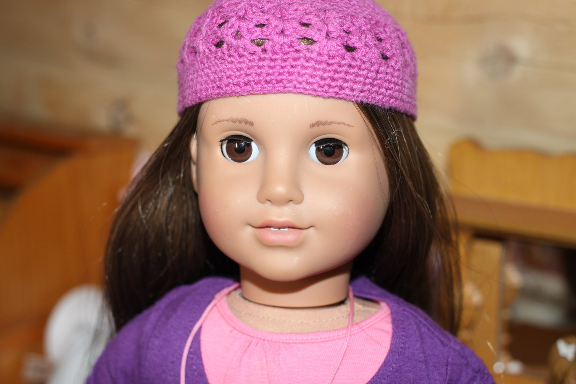 Marisol has a winking left eye, meaning it doesn't open and close on its own. Otherwise she is in perfect condition. I feel her face is cuter than most Marisols.